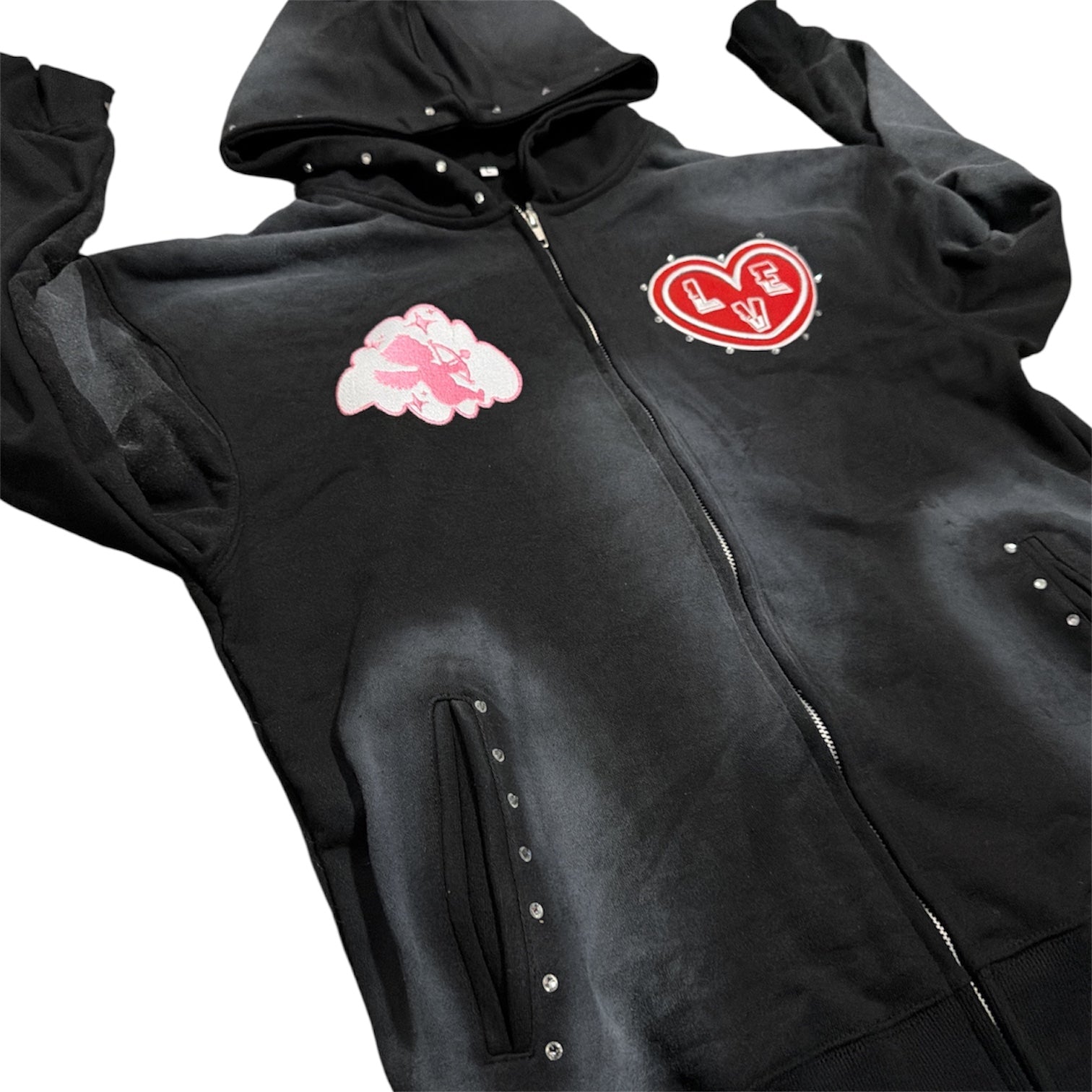 SUNFADED BLACK ZIP UP HOODIE